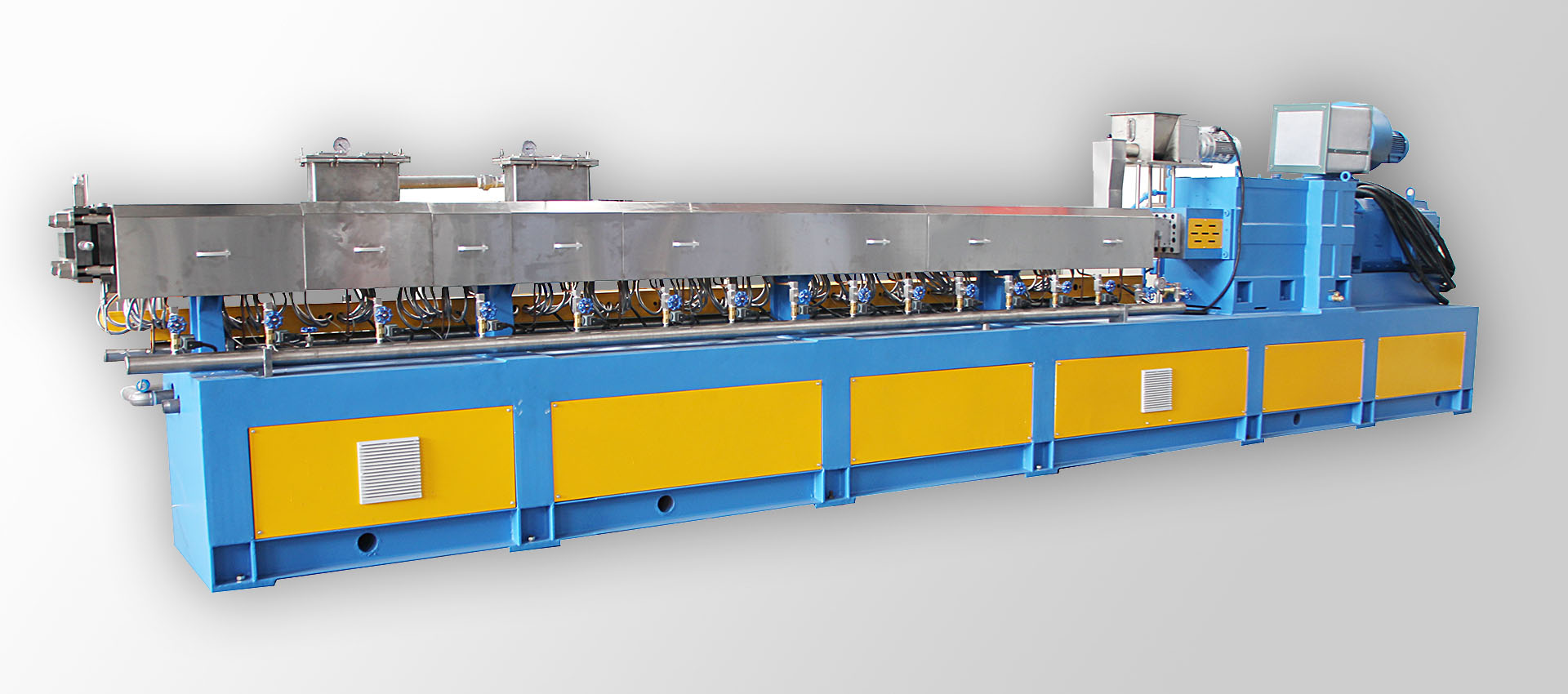 TPE,TPE這種改性塑料材料我們又把他叫作熱塑性彈性體材料。彈性體塑料擠出機(jī)和普通的塑料擠出機(jī)所用到的螺桿設(shè)計(jì)是不一樣的,因?yàn)槲覀兂R姷腡PE材質(zhì)塑化性能要比普通PVC塑料材質(zhì)要差一些。所以我們常見的熱塑性彈性體擠出機(jī)從外觀看要比普通塑料擠出機(jī)要長一些。這是因?yàn)槲覀円娱L塑料的塑化時(shí)間來保證產(chǎn)品的生產(chǎn)質(zhì)量。所以我們看到的熱塑性彈性體擠出機(jī)的長度要長一些。TPE塑料產(chǎn)品在生產(chǎn)的時(shí)候和其它塑料的生產(chǎn)工藝一樣,都是要先把原材料生產(chǎn)成我們所需要的顆粒后才可以再把顆粒加工成我們所需要的產(chǎn)品形狀。比如說彈性體密封條的生產(chǎn),熱塑性彈性體管的生產(chǎn)生產(chǎn)工藝都是這樣的。我們在選擇設(shè)備生產(chǎn)的時(shí)候一定要確定產(chǎn)品的材